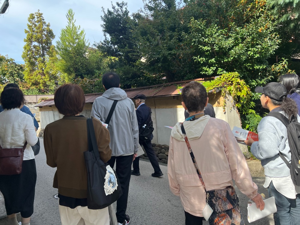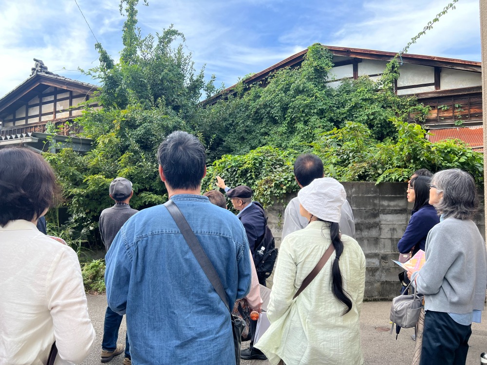 金澤町家情報館を出発し町家が残る新竪町へ向かい、侍が居住した水溜町や油車から里見町を経て、本多家の下屋敷であった下本多町六番丁へと歩きました。